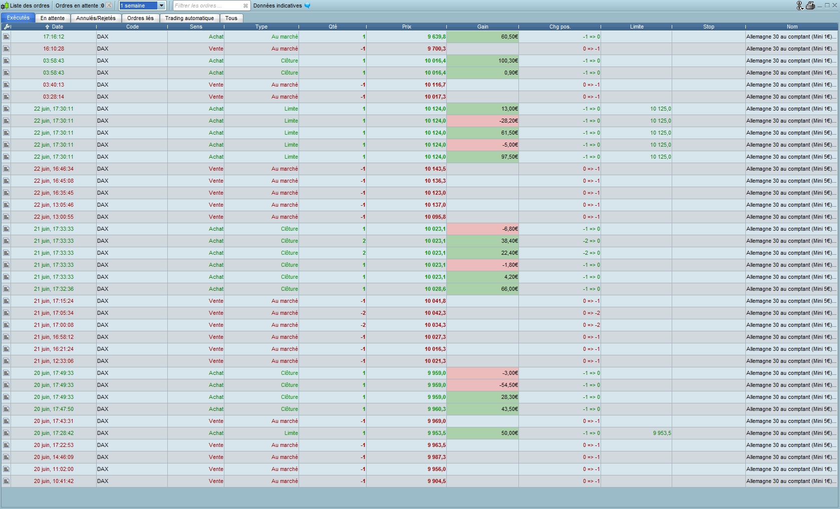 Je trade essentiellement le DAX sur ce compte. De temps en temps un peu d'autres produits si j'ai de l’inspiration.