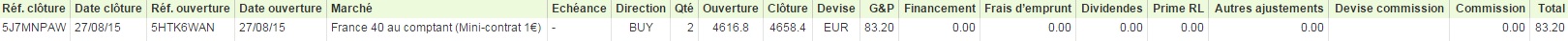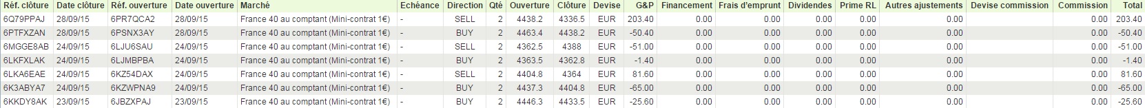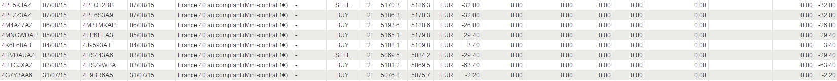 Après un très beau début de journée, le CAC a beaucoup baissé le soir, allant chercher notre stop loss. Dommage. Voilà les résultats en cours (pas de trade aujourd'hui car le range du matin était trop grand pour la stratégie):
