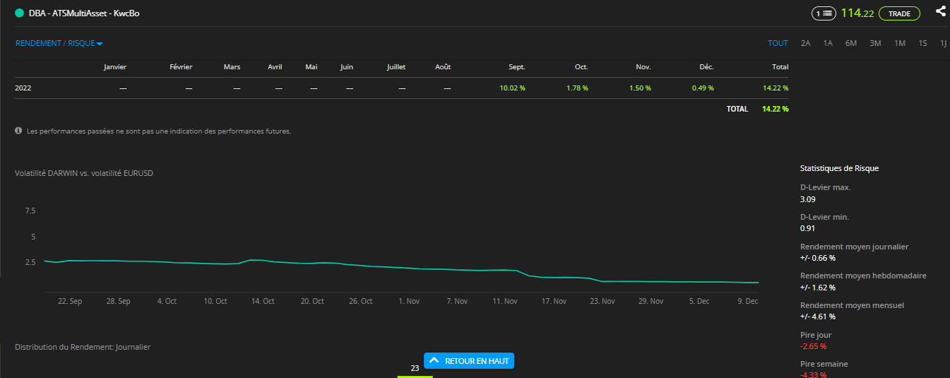Je vous avais présenté Darwinex et j'avais pris une position long terme ile 13 septembre sur des DARWIN