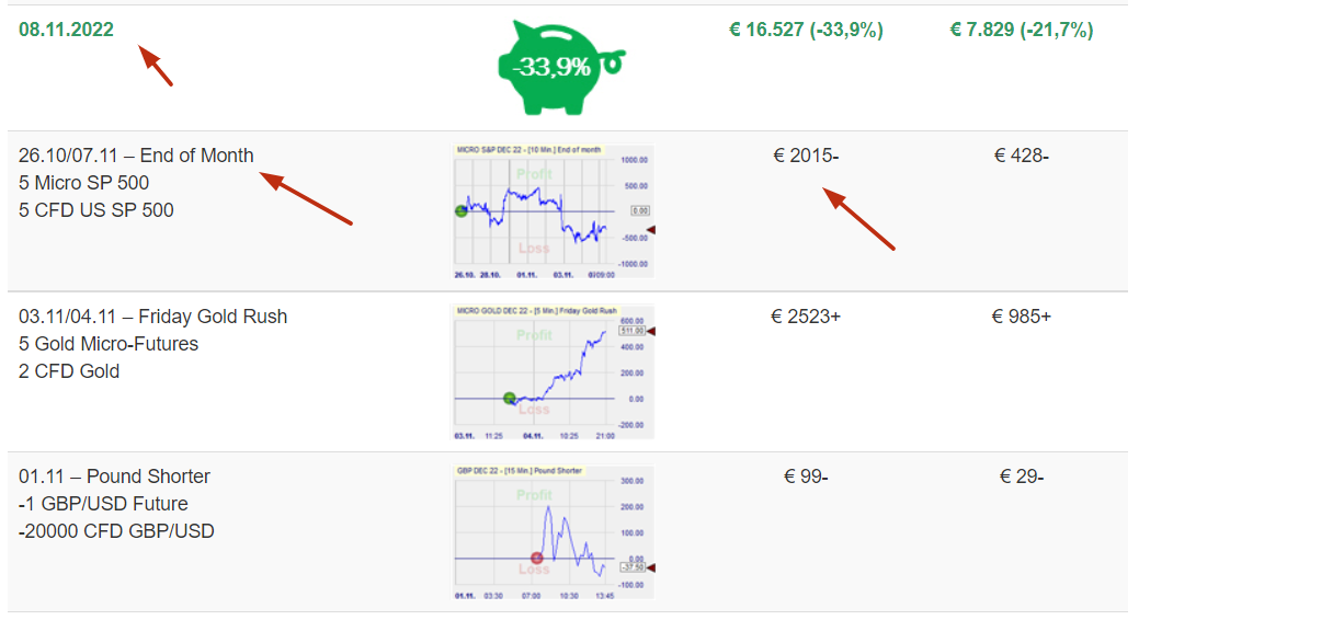 3.Les stratégies peuvent se maintenir sur des marchés négatifs. La stratégie DAX a ajouté 23 %, alors que le DAX lui-même a perdu 11 %.