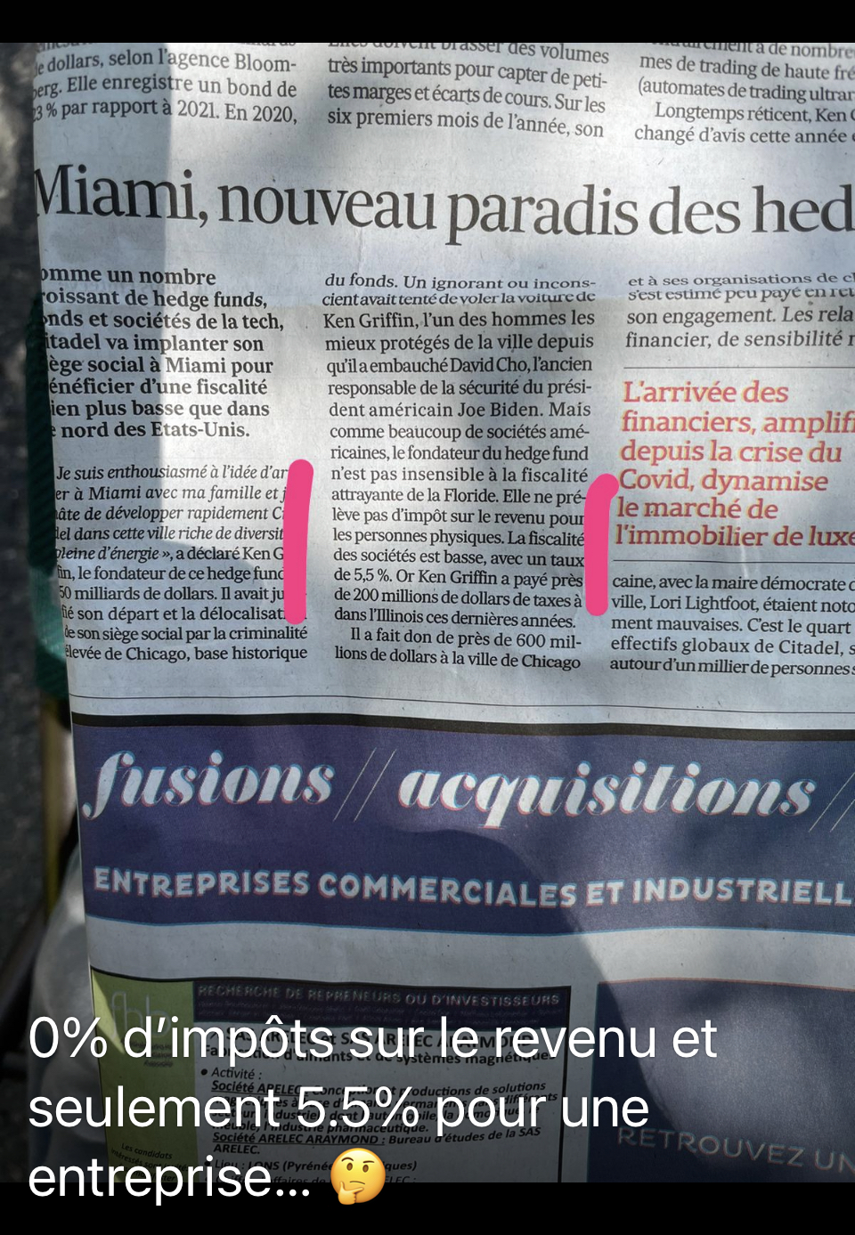 J'ai lu dans les échos qu'il y a, désormais, en Floride, un taux à zéro %, dans certains cas. (Finance, Hedge Funds, etc...)
