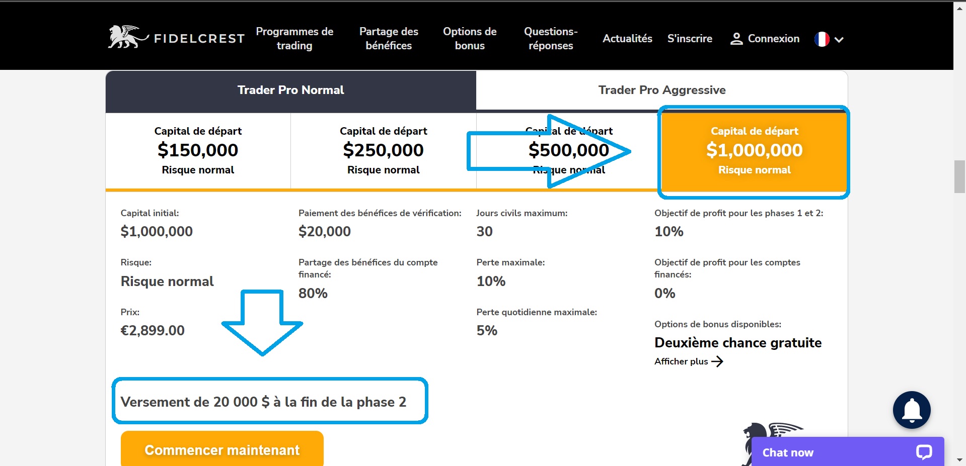 Ce qui est 4 fois plus que FTMO qui reste bloqué à 400 000$ au maximum par trader.