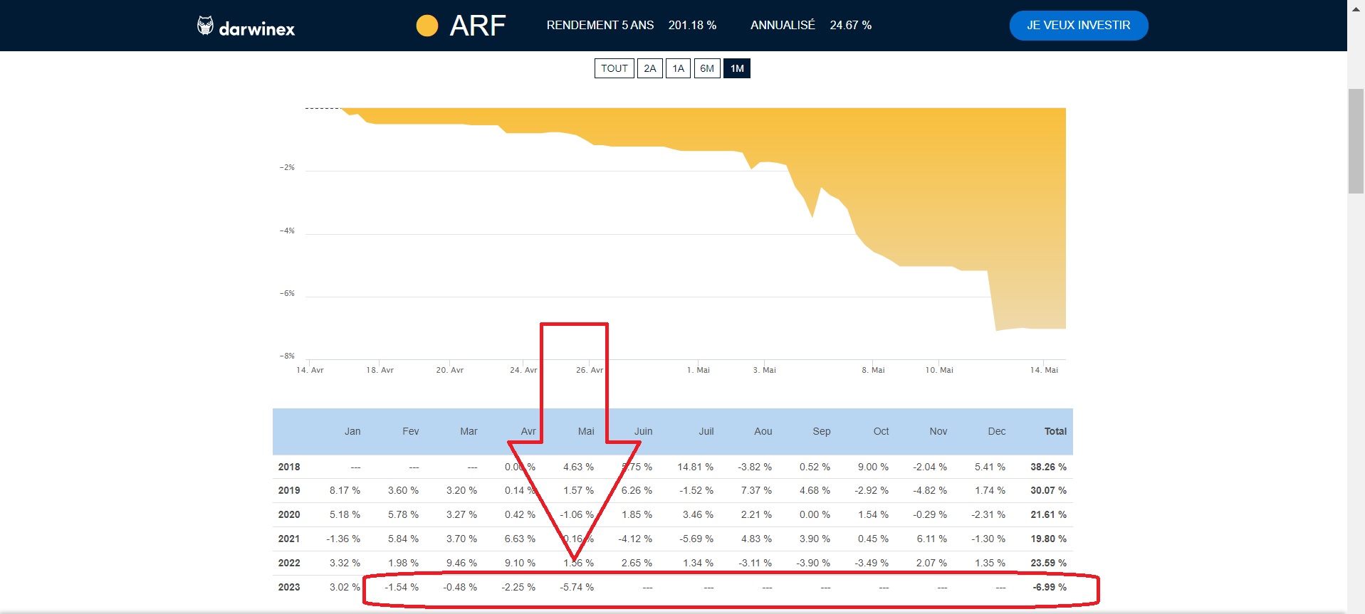 Le Drawdown, dont on se demandait, il y a quelques mois de ça, si il allait atteindre 1 an, est désormais sur une trajectoire bien supérieure à 1 an.