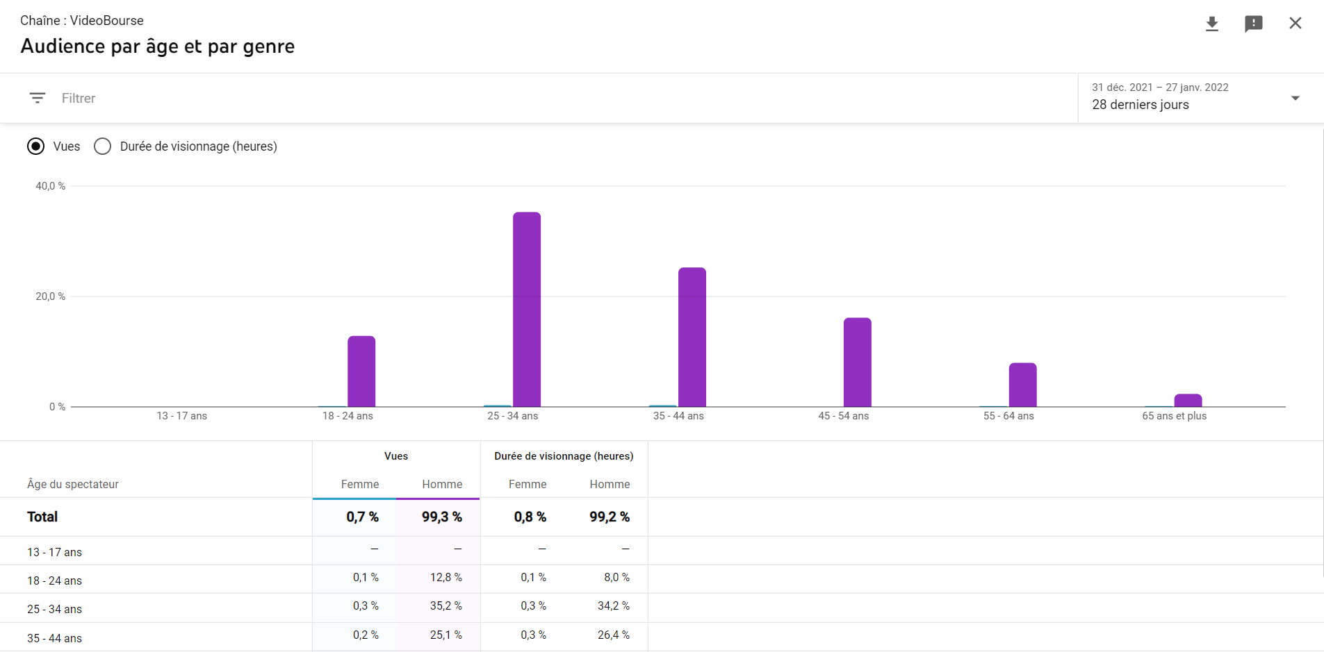 Une info concernant l'âge moyen des utilisateurs et auditeurs VideoBourse :