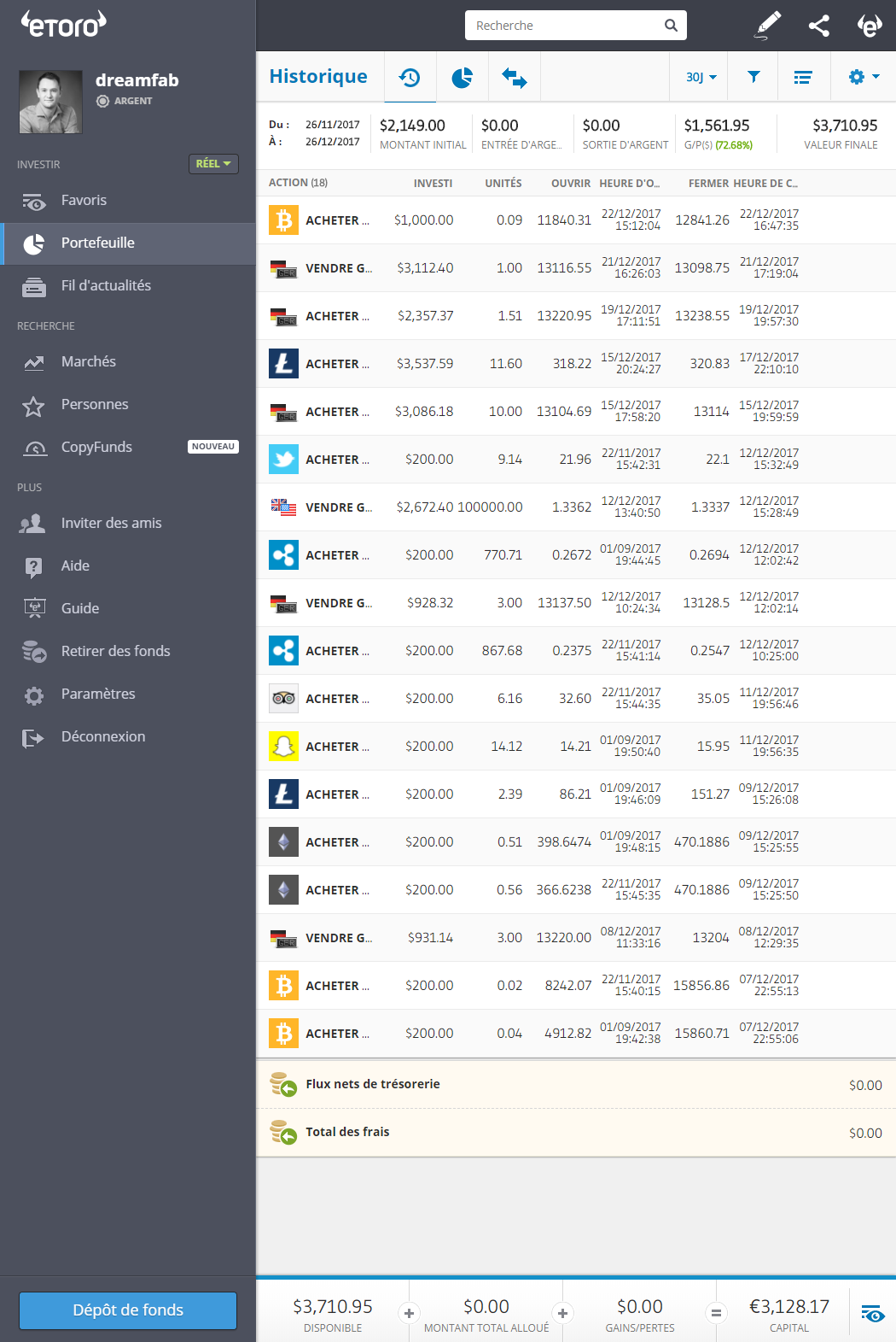 Dans mon trading intraday, il y a eu des hauts et des bas, mais je fini gagnant.