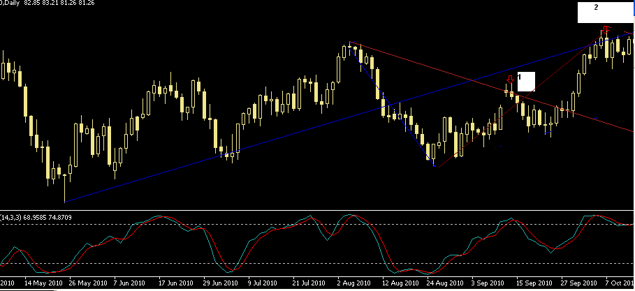 Attention: Une grande (et si ce n'est pas la plus grande) erreur des traders de nos jours est de trader les indicateurs! La seule et unique chose dont il faut tenir compte est le "PRIX". La Stochastique Lente est utilisée ici juste pour porter à notre attention qu'il y a une possibilité que le marché renverse sa course.