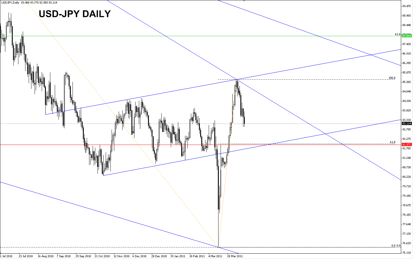 Pour ma part en graphiques hebdomadaires, je repère en effet une zone de résistance importante, à la fois à long terme avec la résistance horizontale des 91.548 et oblique à moyen terme avec la résistance oblique qui marque le haut du canal observé depuis mai 2010: