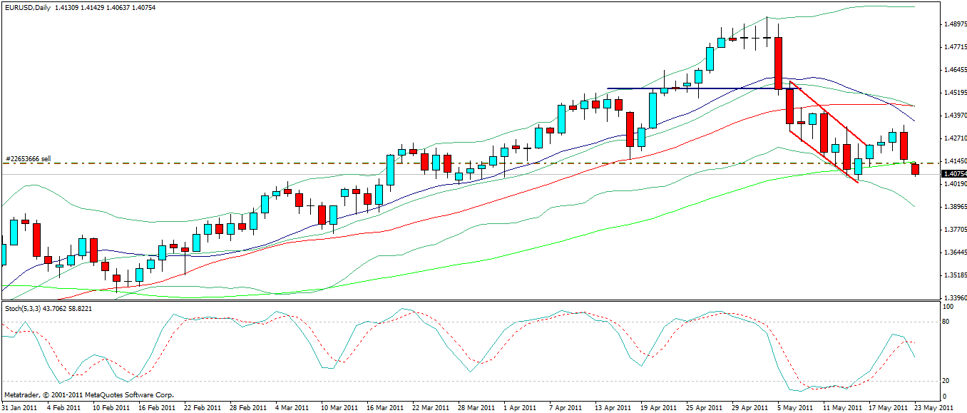Ces considérations terminées, je suis à la vente sur EUR/USD depuis le vendredi 13 mai (EH OUI cela ne s'invente pas !) date qui selon ma stratégie correspond à un retournement majeur sur la paire la plus liquide du monde.