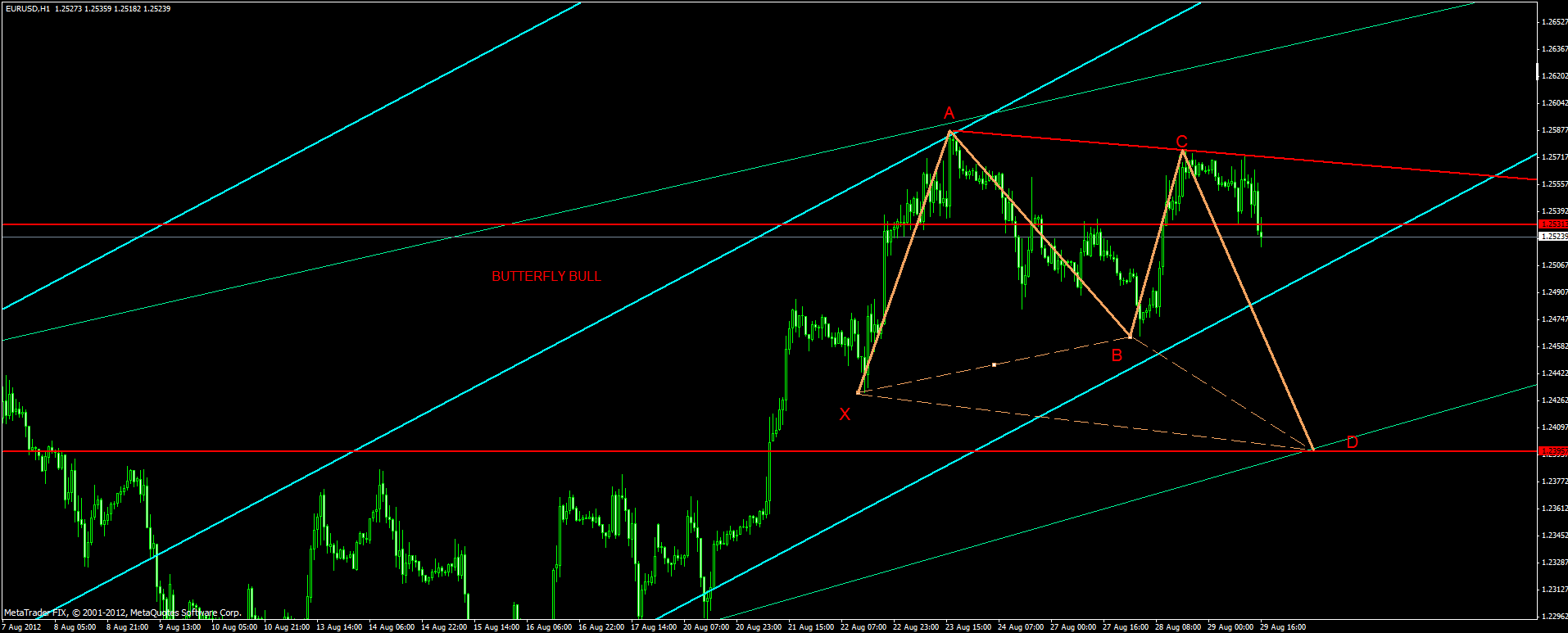 je vois un butterfly pattern bullish on descendrai jusqu'au point D pour le confirmé suivis d'une hausse après ce point D estimation à vendredi ! si ce n'est pas le cas lundi voir mardi du au calme généralement connus le lundi