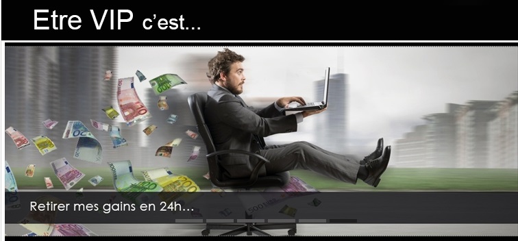 L’homme assis sur la chaise et avec de l’argent qui vole vite, illustre la possibilité de retirer en 24h.