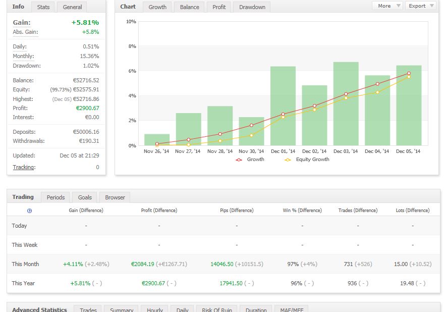 Bon, j'ai promis de respecter l'anonymat de mon "ami" mais il m'a envoyé ses performances MyFx depuis fin Novembre et était fin nerveux.