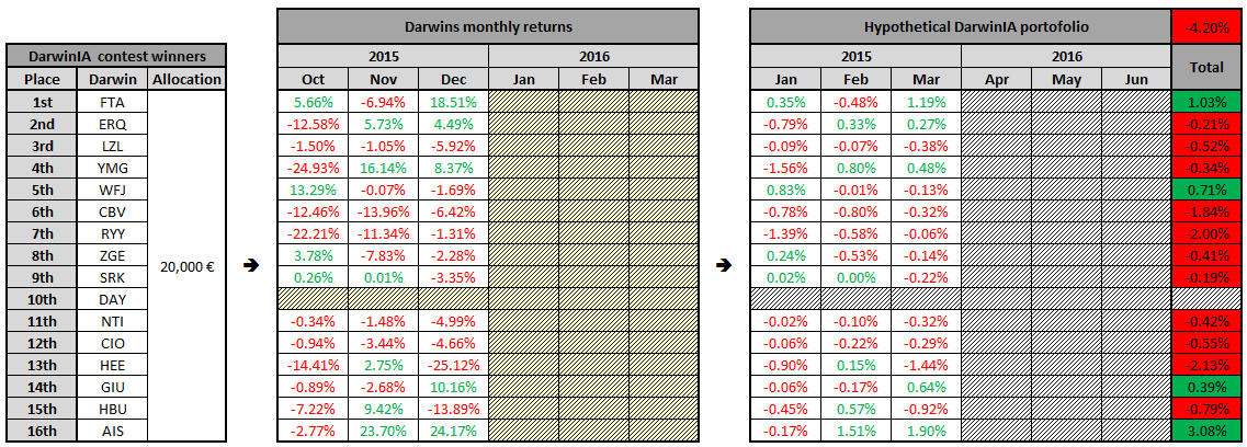 - Le classement Darwinia évalue les DARWINs du 1er du mois au 30/31 du mois. La performance passée n'est pas un élément prépondérant (Tous les DARWINs cités ont fait un beau mois de Décembre, donc jusque là, pas d'incohérence outre-mesure).