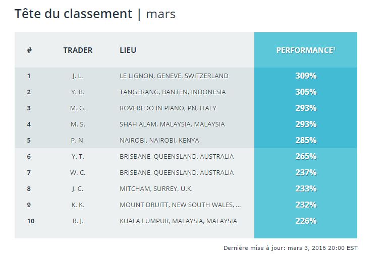 Ce qui est intéresant à noter c'est qu'on voit en un coup d'oeuil dans quelle partie du monde vivent les meilleurs traders.