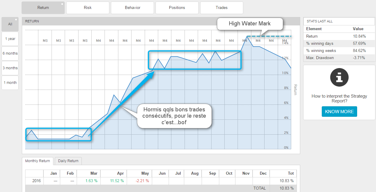 Ca tiendra, j'ai compris et mis au point des choses impensables. Vraiment, sans vouloir me vanter ou quoique ce soit d'autre, il ne peut pas en être autrement. Ca tiendra. C'est un Ultra Grââl Il peut perdre quelques jours de plus, une semaine même mais il n'aura jamais un mois perdant et je pense même qu'il peut tenir un DD à un chiffre.
