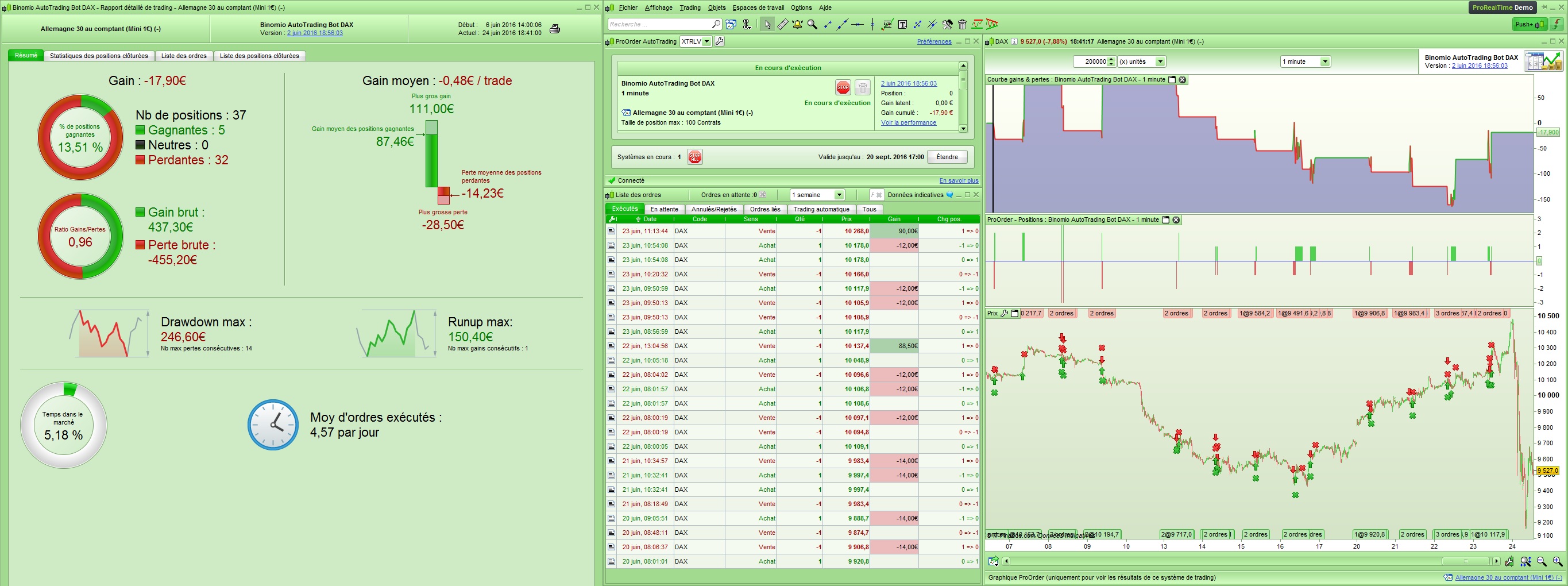 En effet, je trade en réel via une stratégie de trading automatique sous ProRealTime depuis plus d'un an, et les résultats sont conformes aux backtests, et assez bons pour le moment. Vous pouvez suivre cela sur la file de discussions: http://www.videobourse.fr/forum-forex/v ... 12&t=12439 .