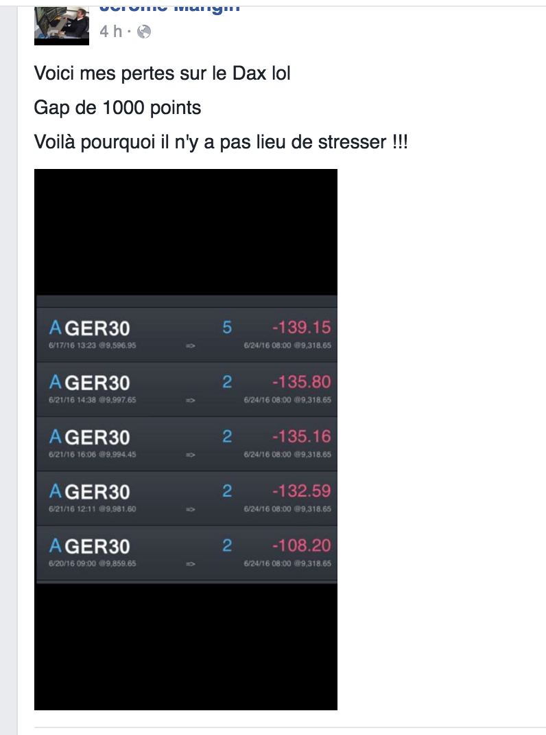 Il faut se rendre compte , 1000 points, je connais certains gerants de salle qui l aurai frappe . Ce type est un malade du jeu , ne sais pas gerer son risque, ne sais rien gerer, c' est un mythomane, un ivrogne du trading.