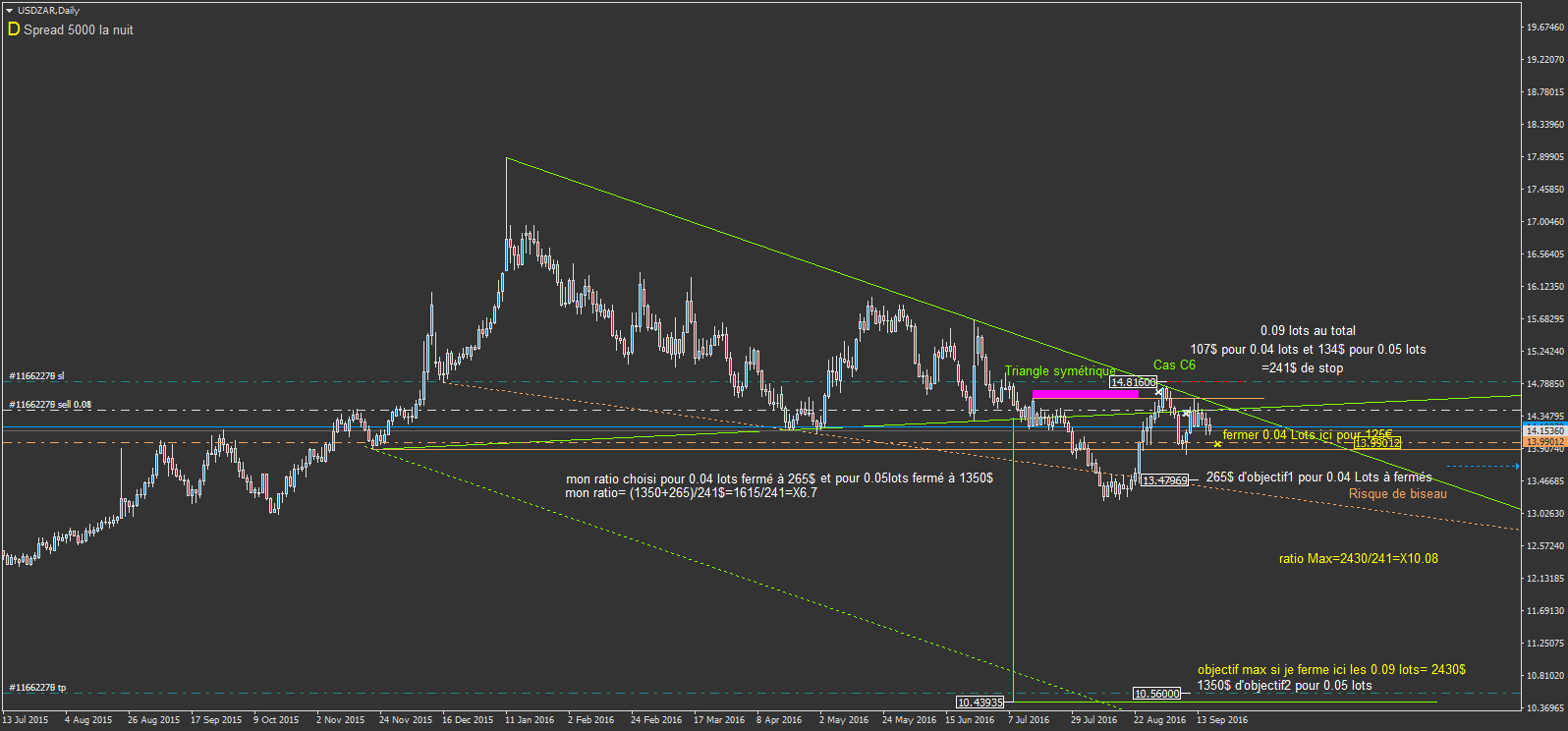sur USDZAR, je suis toujours en position à la vente, surement un moment. mais le 21 septembre, mercredi soir, y a le FOMC, c'est à dire la politique monétaire de la FED.