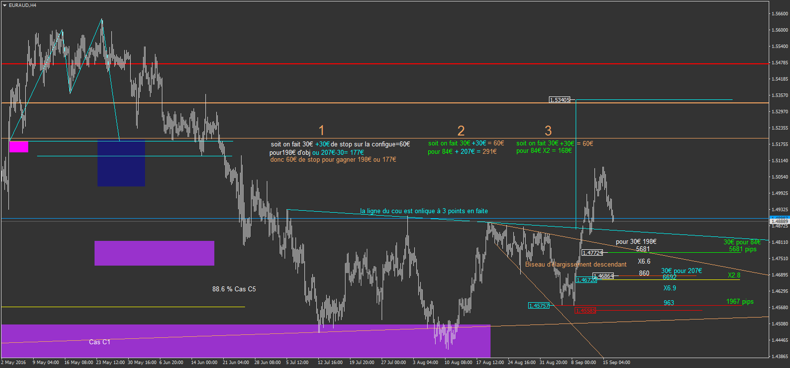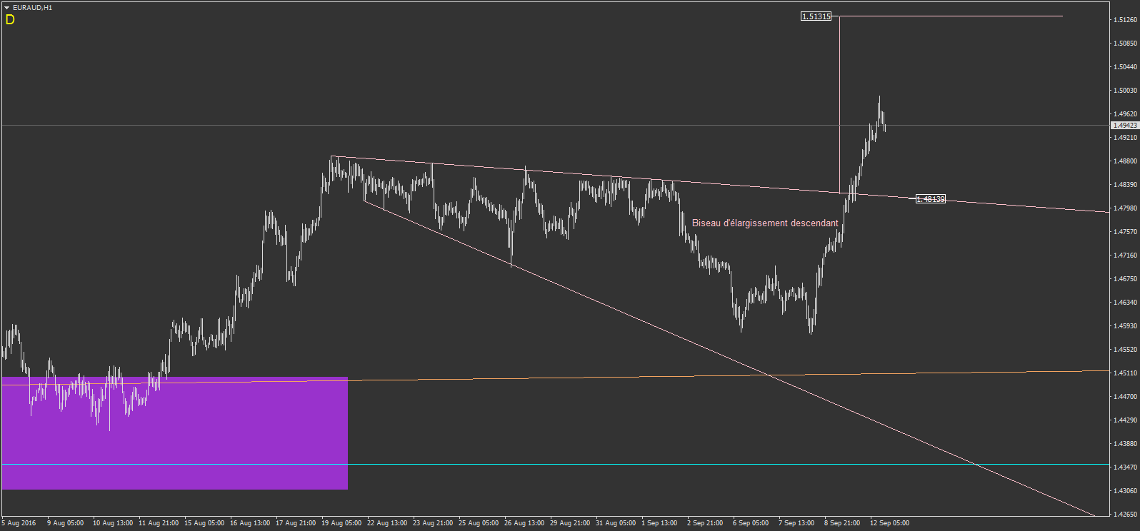 voici l'image du biseau d'élargissement descendant sur l'EURAUD