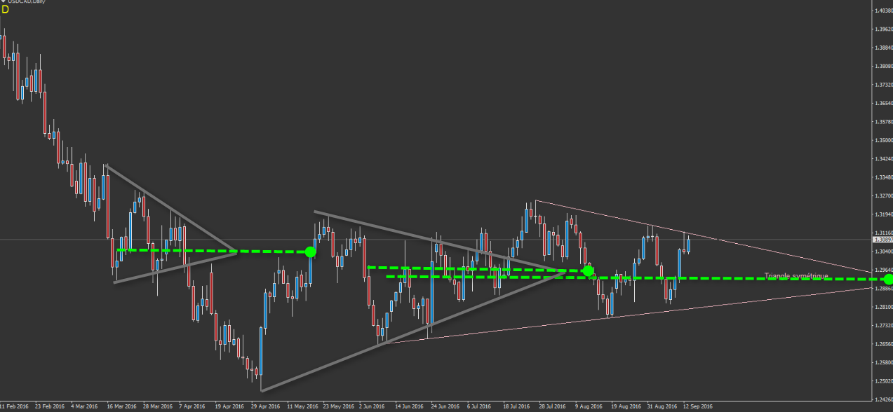 intéressante cette vision par l'apex du triangle. j'ai constaté aussi que suite à la cassure d'un triangle, quand on rentre dans le triangle lors d'un pullback, on revient souvent tout de même sur ce niveau passant par la pointe du triangle, est c'est donc un niveau ou le prix est plus intéressant que d'agir à la cassure ou au contact simple sur le triangle.. bon courage pour la suite de ton trading sur cette vision intéressante justement.