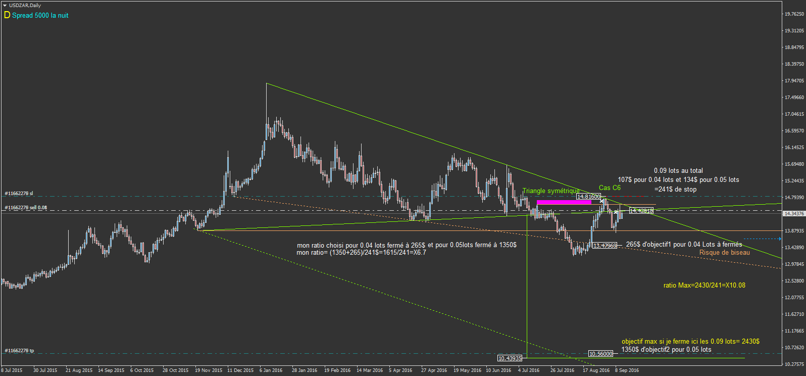sur USDZAR, je suis toujours en position à la vente, surement un moment. mais le 21 septembre, mercredi soir, y a le FOMC, c'est à dire la politique monétaire de la FED.