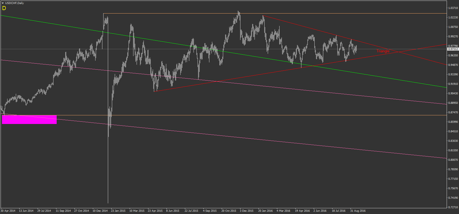 USDCHF un méga triangle symétrique et à 9h30 demain :