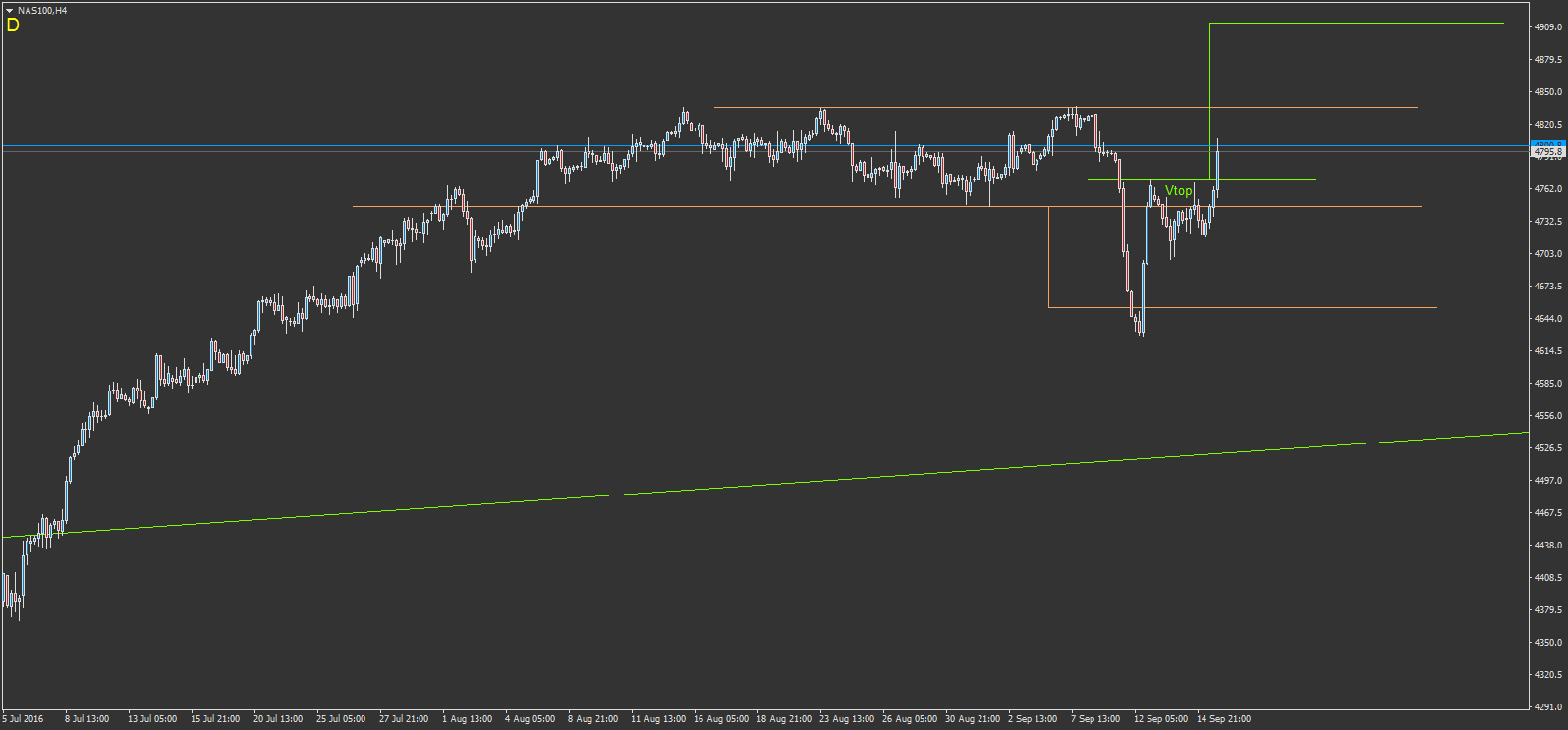 l'indice américain NAS100(us.100) beau Vtop cassé. faut que j'attende le pullback par contre. en ce moment y a pas mal de figure, mais en cour de formation ou cassé, mais ou il faut que j'attende le pullback. allé hop je vais attendre le bon moment voila tout grrrr