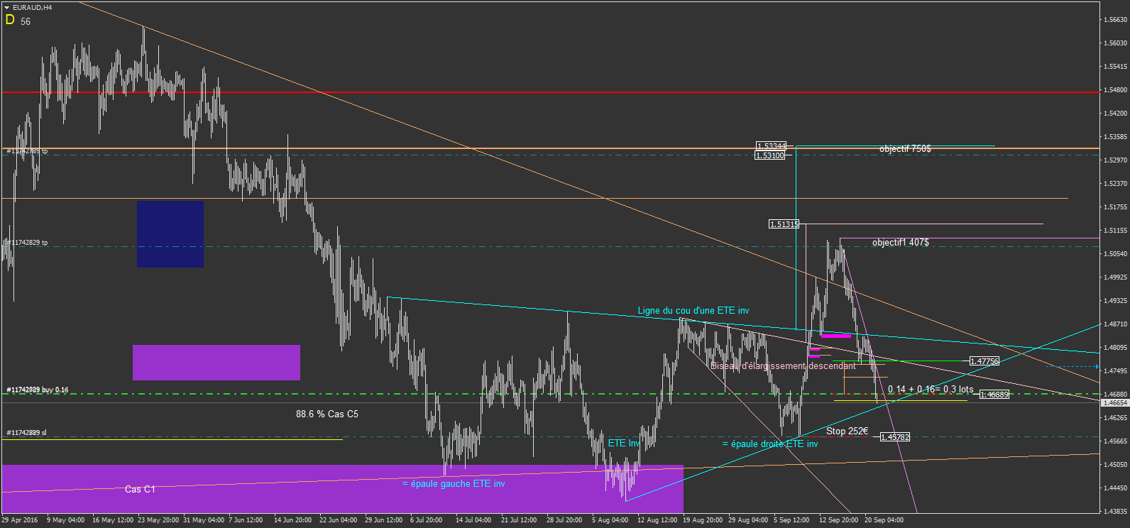 en faite, sur les 36 pages, c'est tout le cheminement depuis mes débuts, mais je n'ai pas tous poster non plus. il y a toutes mes interrogation depuis mes débuts, et les évolutions , les interrogation avec d'autre intervenant du forum, et du coup pleins d'idée mélangé, avant d'en arrivé à mes méthode de seulement maintenant lol. ca fait une belle aventure d'apprentissage. mais comme je le dis toujours, ne copier pas mes trade, je les poste car ca fais partie de mon travail de rigueur de mon trading, ca me force à être carré lol.je me vois mal reprendre toutes les page pour récupérer les trades vu que de toute façon y a un mélange de technique, surtout au début, même si la base reste le chartisme, on a ,avec d'autre, appris le chartisme, les figures harmonics, et j'en ai fait un mélange pour en extrapoler 16 Cas d'intervention ou d'analyse autour de 16 types de figure chartiste et de 7 figures harmonics. le tous me permettant de faire soit des cas d'intervention, soit des cas utilisé comme guide d'analyse avant les cas d'intervention. du coup en reprenant la file, serait long et inutile ...phi1618 a écrit :Après 36 pages, je pense qu'il fallait créer une liste des trades postés (gagnés et perdus) pour éventuellement savoir si cette stratégie chartiste porte réellement ses fruits.