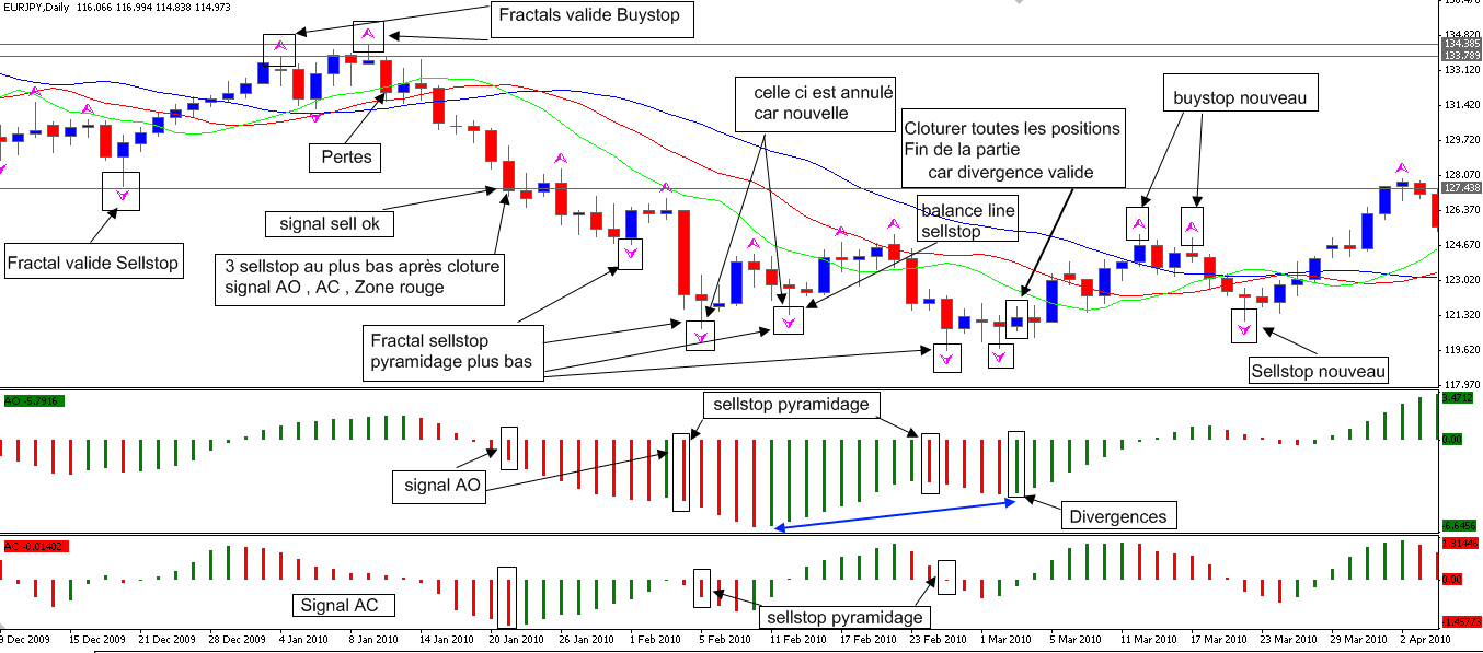 Durant la semaine dernière, Herzou m'a donné un lien vers le site d'alpari où la stratégie de Bill Williams était clairement expliqué. Cependant cette stratégie est expliqué en anglais, donc ce n'est pas forcement compréhensible pour tout le monde.