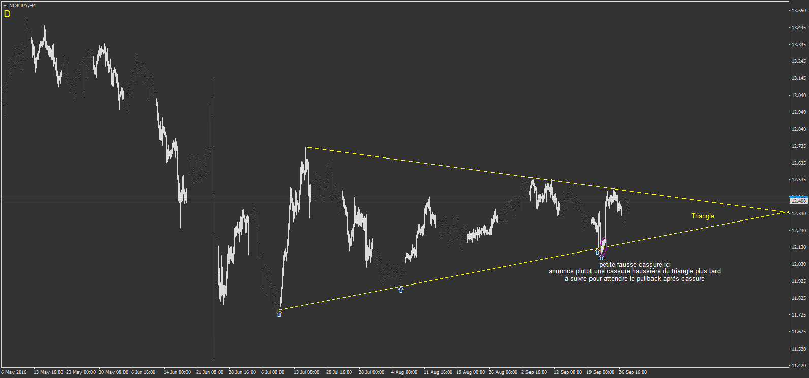 NOKJPY triangle symétrique, j'y attend une cassure, puis un pullback ou j'aurais peut être à intervenir selon comment ca se présente.