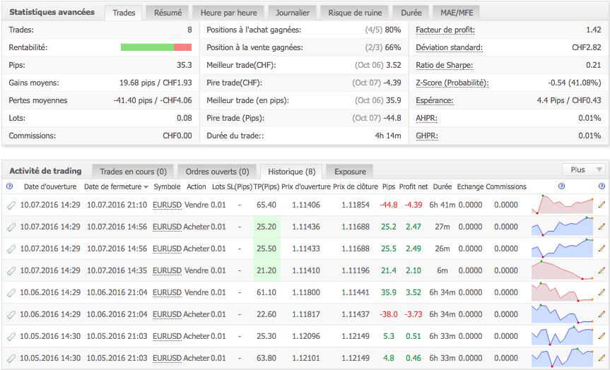 Autrement l'intéret de ce sujet, tant pour prouver quoique ce soit qu'à des fins de promotion ou validation, s'avérera minime ...à moins que le profit factor soit conséquent avec une perte moyenne au-delà de 2-3 pips
