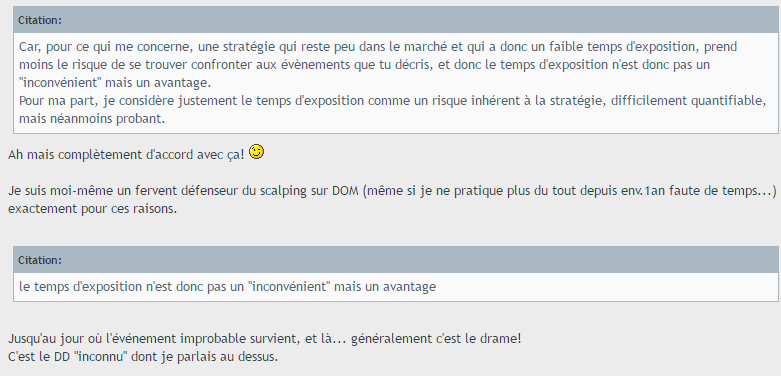 - Et dans son mode d'intervention, une alliance de scalping, day-trading et swing trading, prenant en compte les tendances ainsi que la volatilité intrinsèque pour essayer à la fois d'intervenir au moment optimal, de cadrer la volat de la strat, et pouvoir laisser courir des gains.