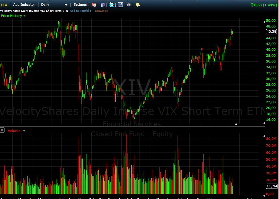 il existe des ETF/ETN très liquides, un qui a retenu mon attention est le XIV de velocityshares, il reproduit l'inverse des mouvements du VIX.celtinvest a écrit : Je ne sais pas comment fonctionne le trading du VIX chez XTB, mais sur les marchés régulés, on ne peut pas trader le VIX !!