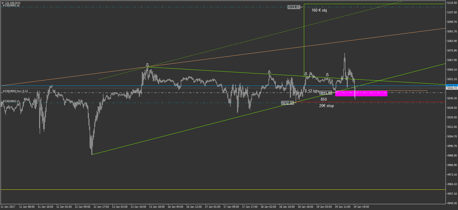 à ben tien, j'avais mis tout à l'heure un ordre différé sur le US.100 et ca a acheté entre temps. Je me demande comment ca va se passer avec l'investiture de Trump, ca peut bouger. mais enfin bref, moi je dois juste attendre de toute facon lol. le stop ou l'objectif. on va bien voir