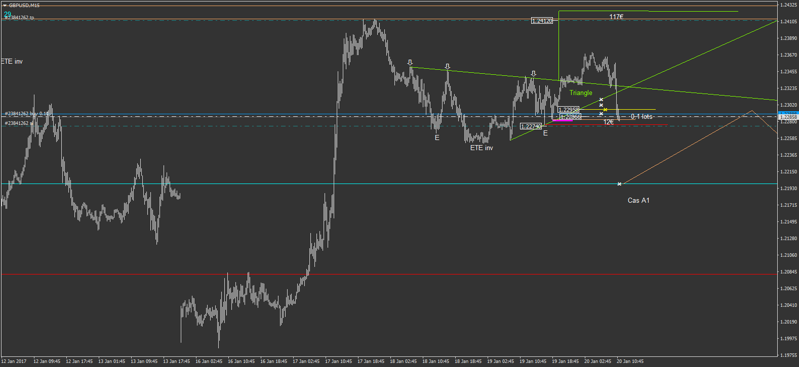 alors avant la semaine qui nous attend, le gbpusd, à été invalidé, mais je suis toujours en position sur l'indice amériquain us.100. finalement, l'investiture de Donald trump de vendredi dernier, n'a pas vraiment fait grand chose.