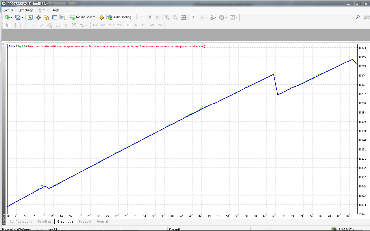 Merci on est bien d' accord tu as raison. Mais comme en BT et en démo les résultats était encourageant j' ai mit le paquet en réel. Et bizarement c' est plus la meme chose, ce qui pose question. (pas pour le BT on sait qu' il ne prennent en compte que les prix d' ouverture).