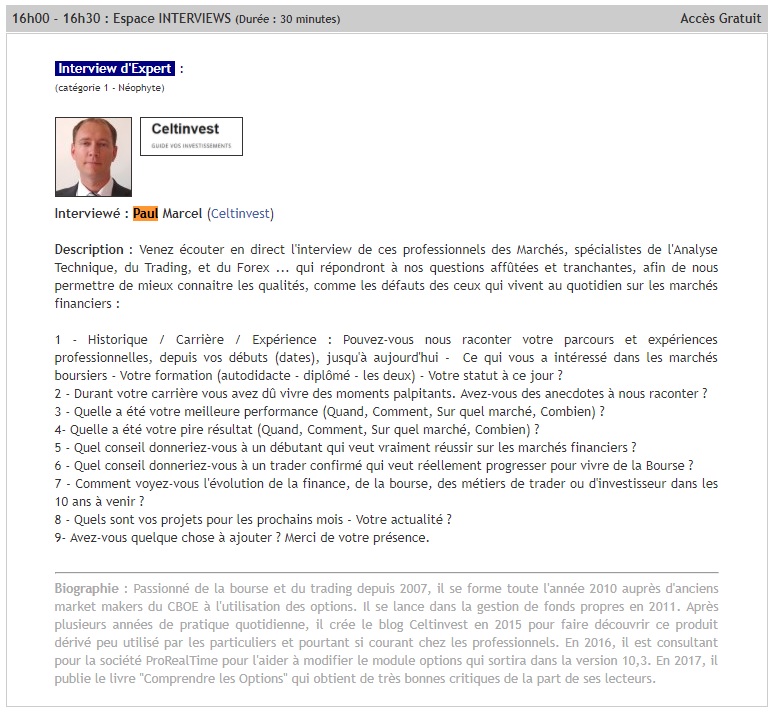 je serai présent, j'aimerai bien te rencontrer Paul à cette occasion (trader Cac 40 FCE avec besoin de couverture option)
