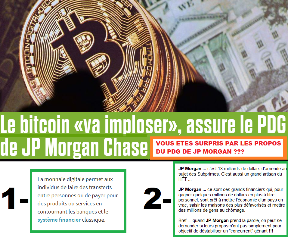 JP Morgan c'est 13 milliards de dollars d'amende au sujet des Subprimes. Un grand artisan du HFT (ce truc où quelques privilégiés sont connectés en fibre optique directement sur les ordinateurs de cotation afin de surveiller les ordres que passent les autres et... offrir de la liquidité)!