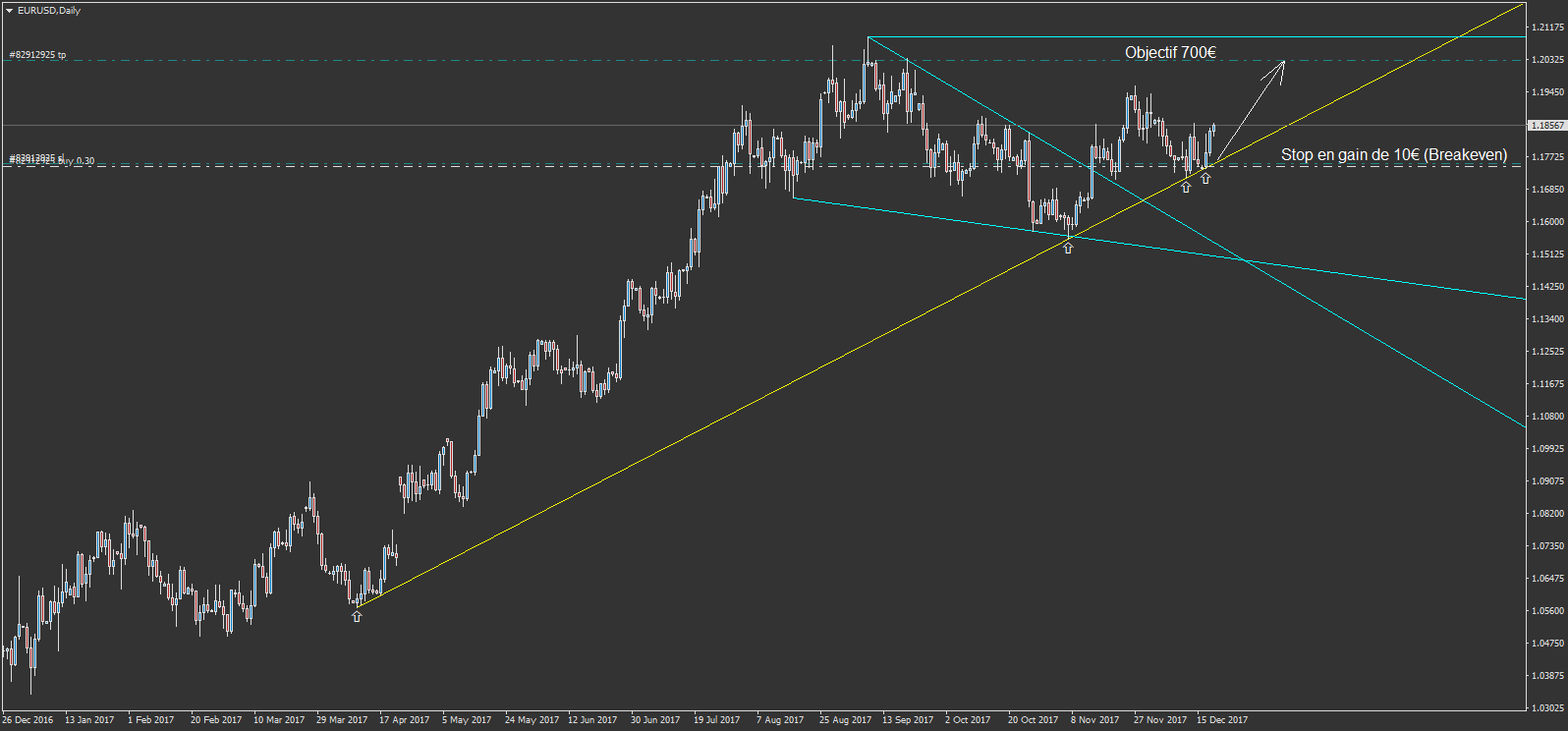 donc l'objectif est le plus haut du biseau. mon objectif est à 1.19700