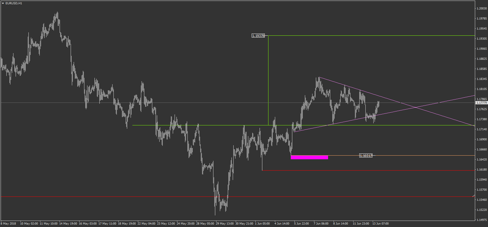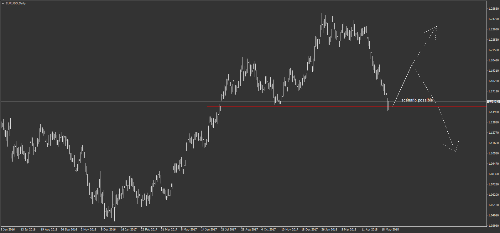 sur l'eurusd, on pourrait réintégrer le niveau est remonter pour former ou au moin tenter de former une épaule tète épaule