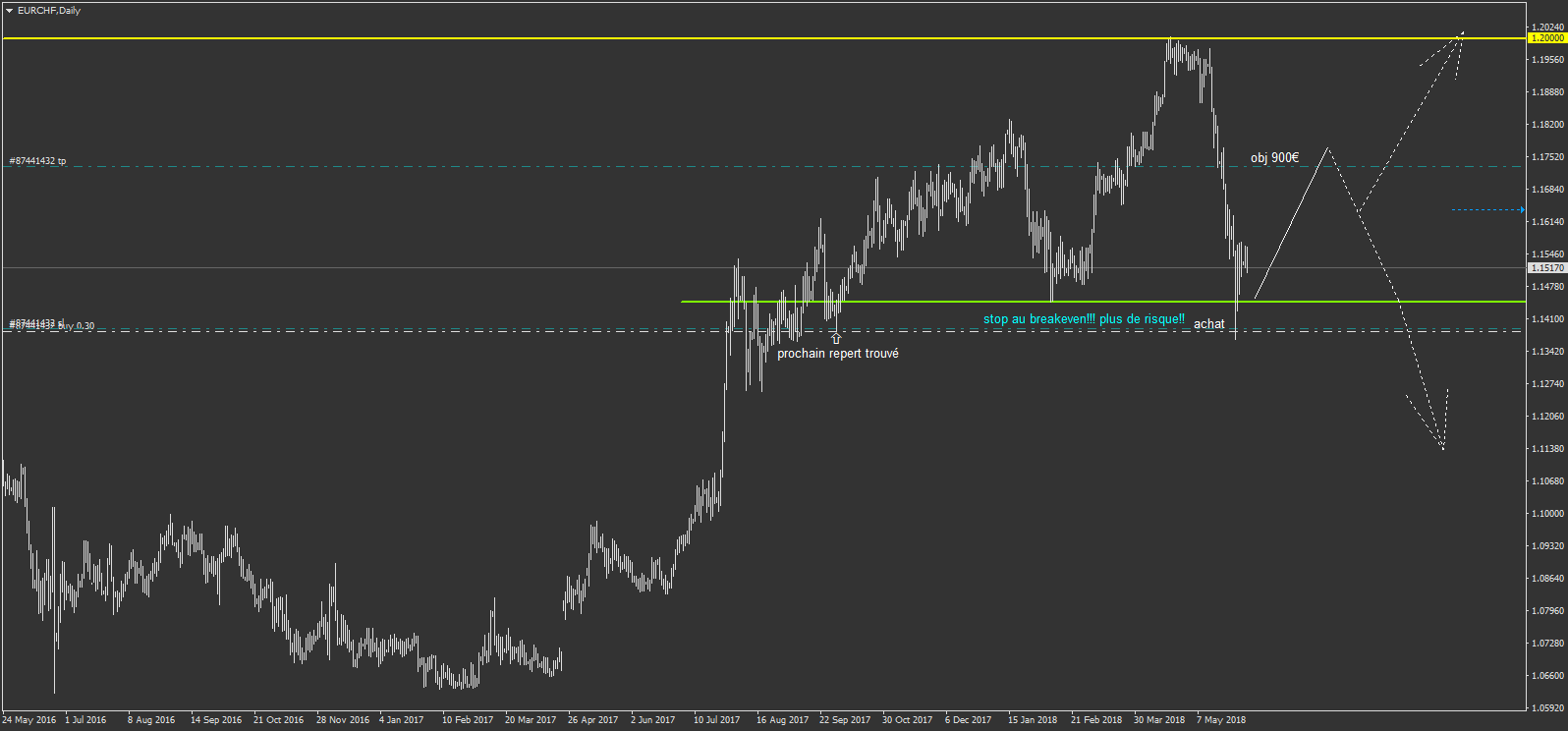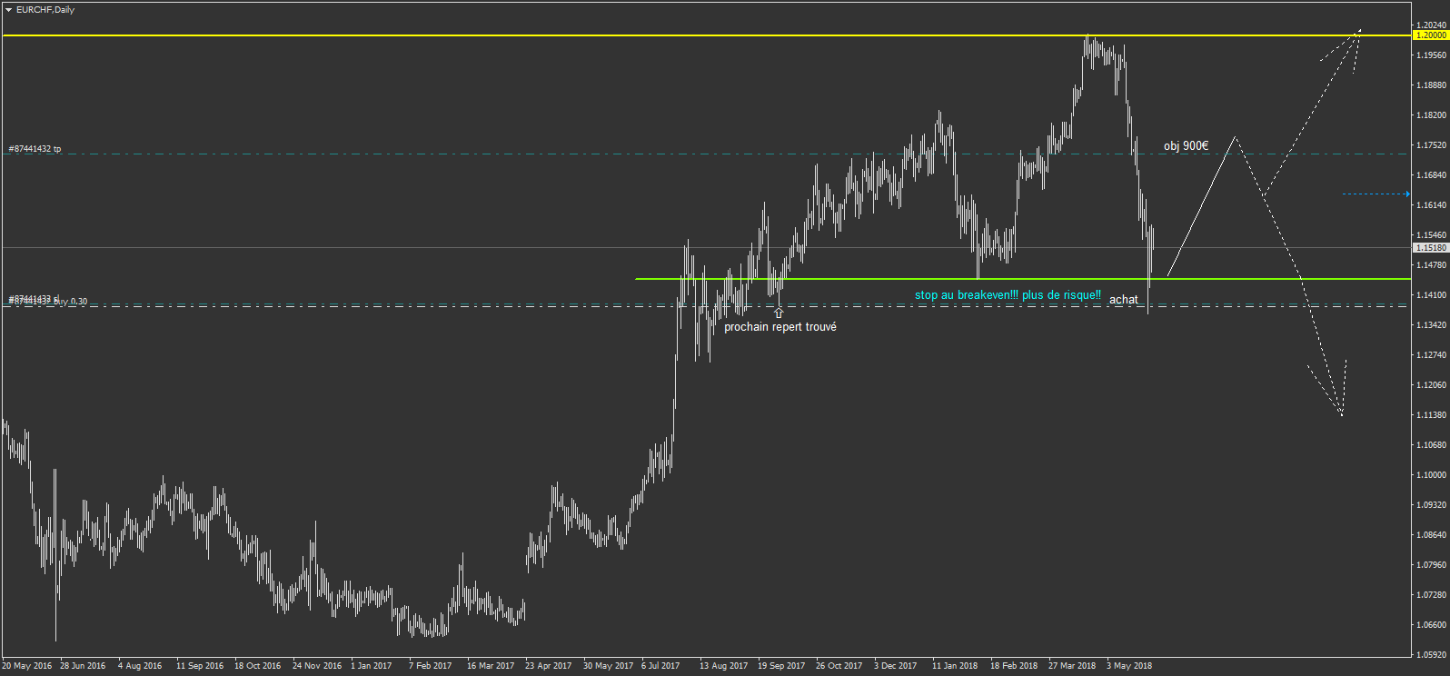 et EURCHF toujours en court à l'achat (le breakeven est fait)
