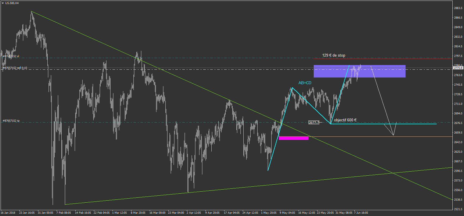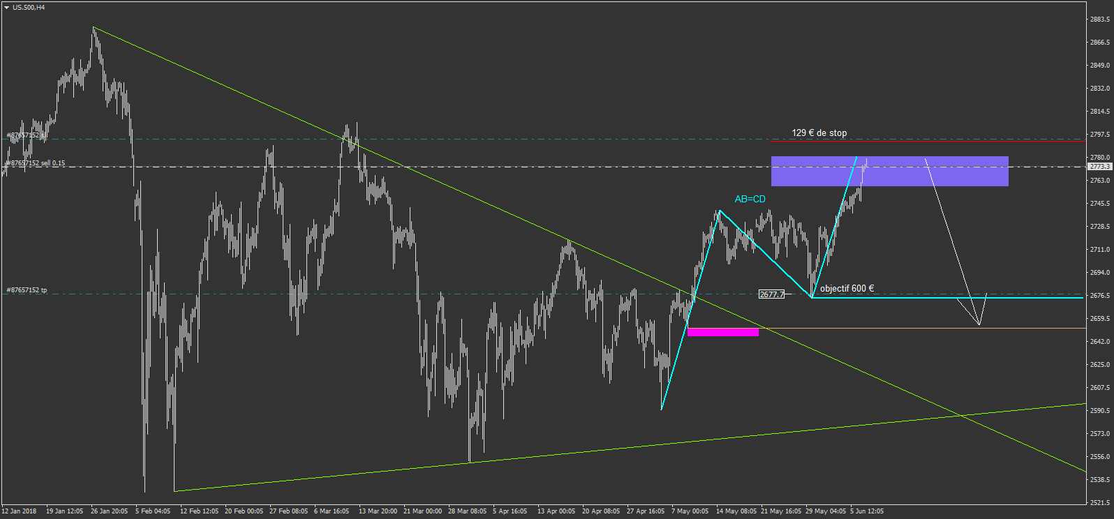 et sur l'us.500 je repère un AB=CD baissier que j'ai décider de tenter malgré la hausse actuelle.