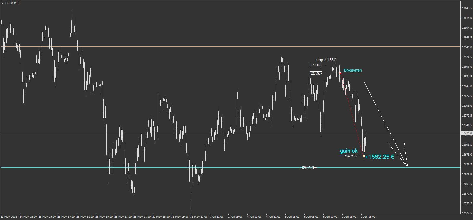 1562.25 € de gains sur le de.30 objectif touché à 12671.6