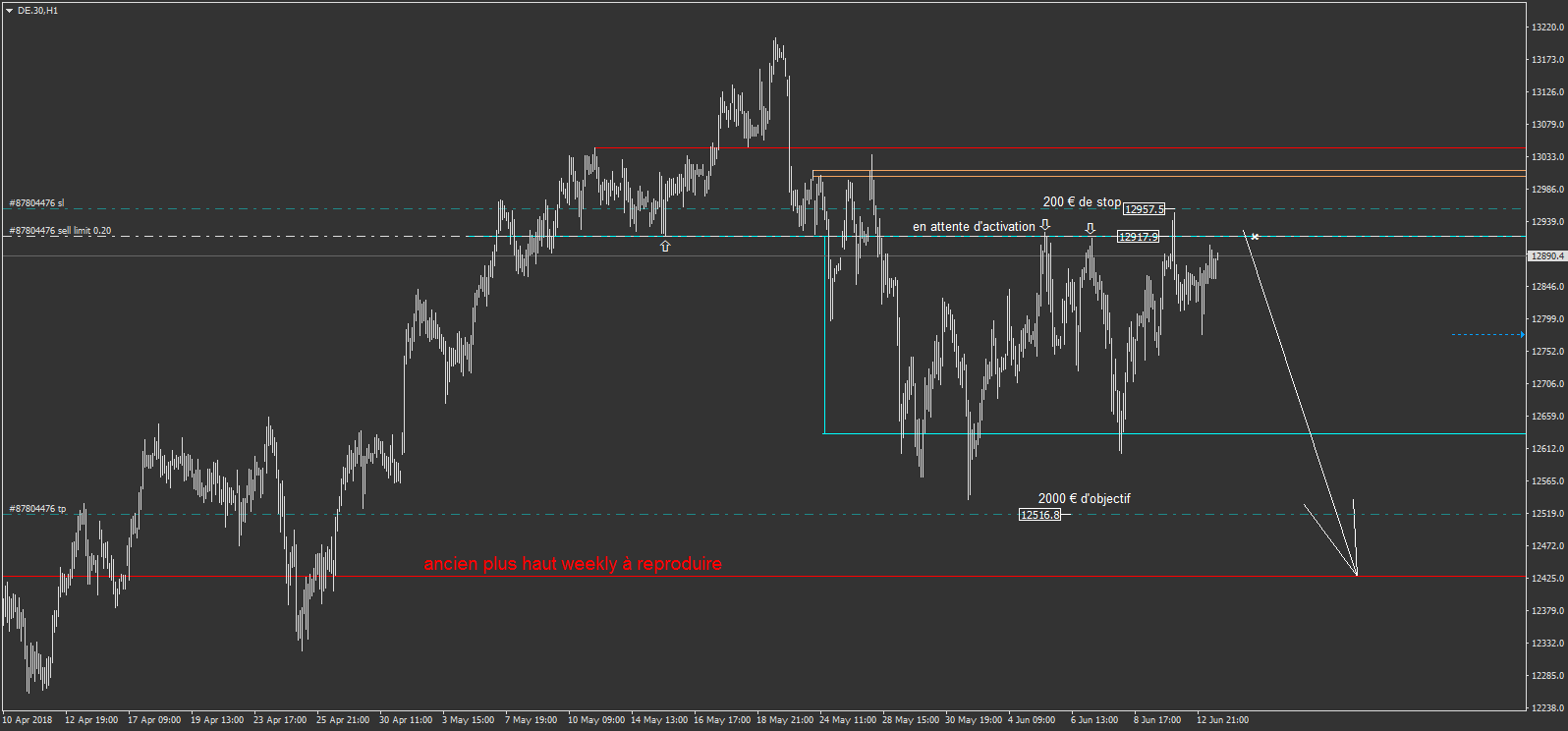 j'ai donc modifié l'objectif peu avant ce niveau des 12428.5.
