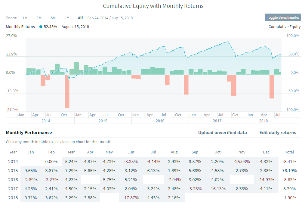 Mise à jour après plusieurs trades gagnants consécutifs. La stratégie repasse positif pour 2018.