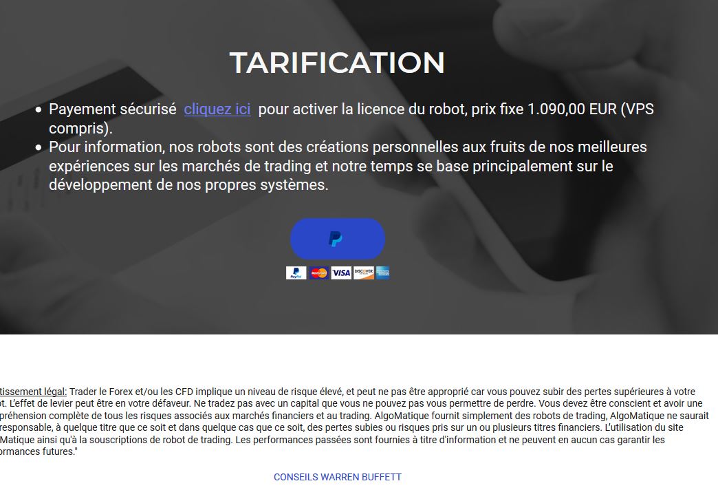 je viens de me faire plumer de 10 000 € chez le site de robot de trading: https://algomatique.com charles latour a pris la main sur mo,n compte en me faisant croire que c'était un robot. grosse arnaque. A FUIR !!