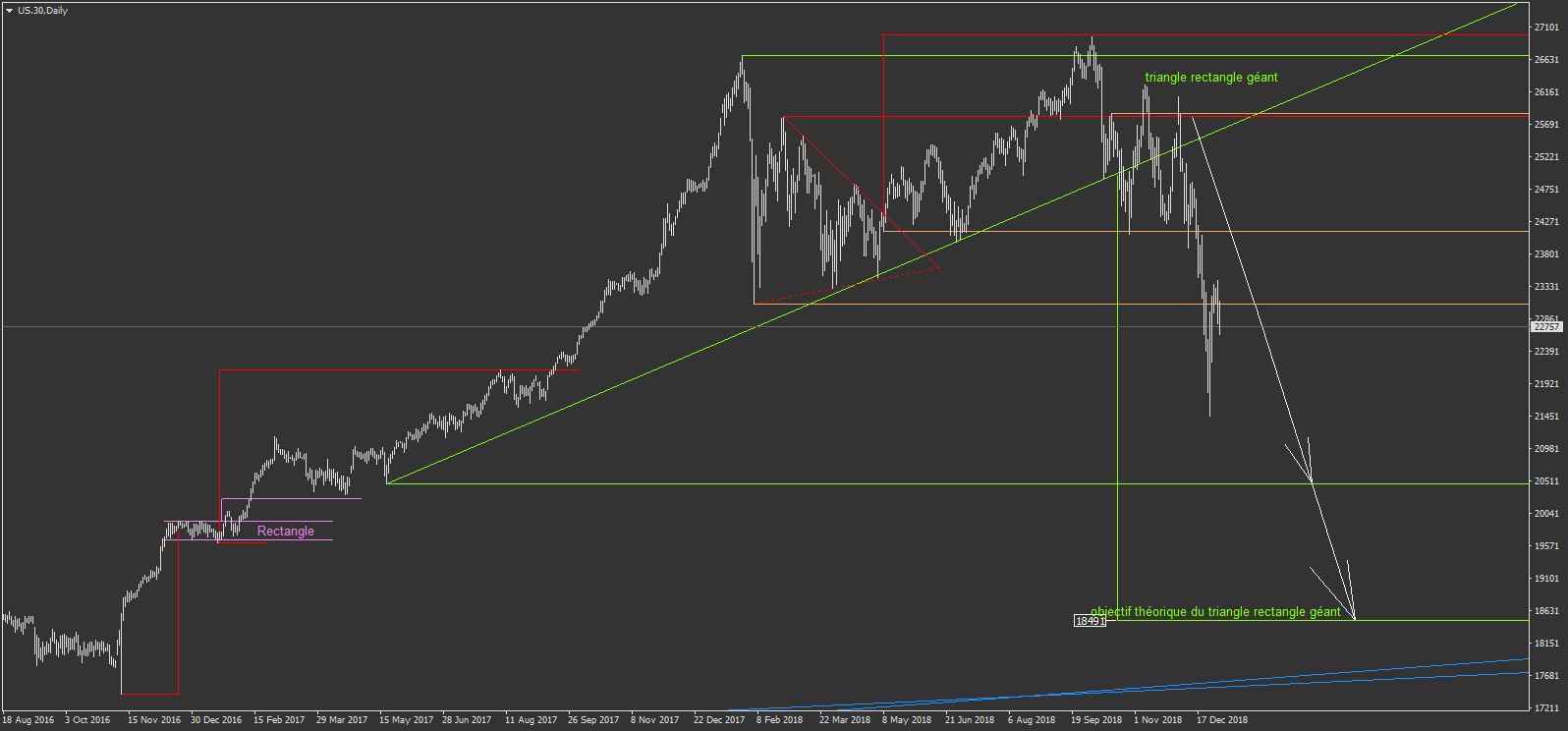 Mais sur US.500, on est pas passé loin sur le dernier plus bas. le US.30 a encore une bonne baisse théorique à attendre, mais un rebond n'est jamais impossible.