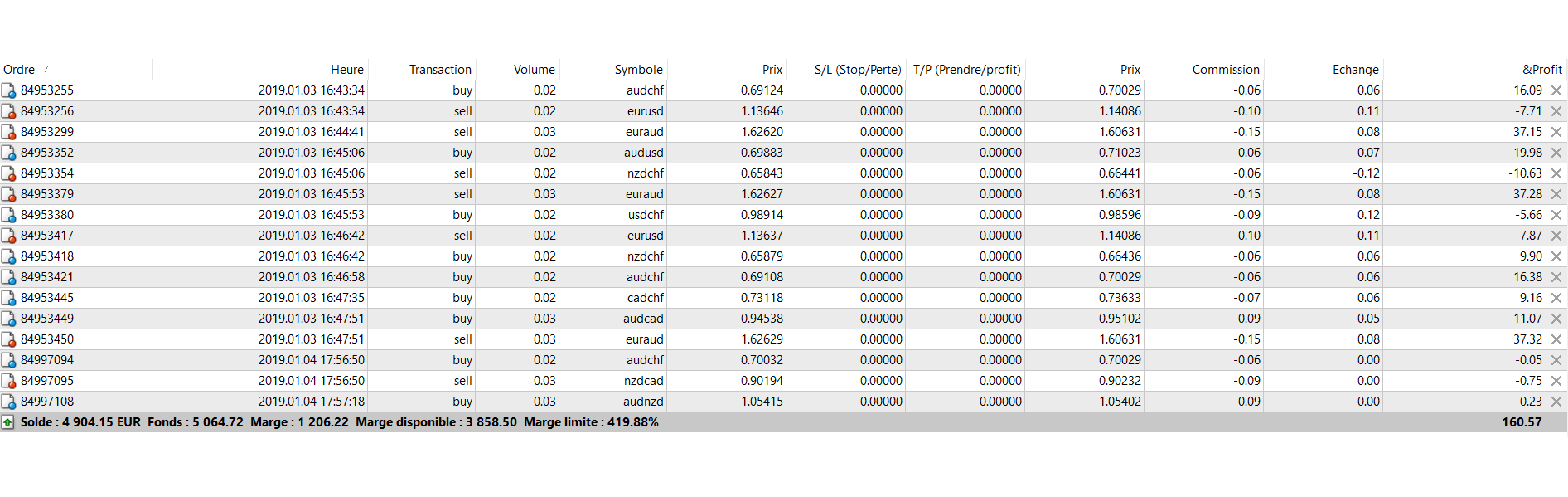Le but pour moi, outre le fonctionnement du système, est de voir l'impact du swap, et sur les trades fermés ma surprise est de voir que le global était positif!! :P