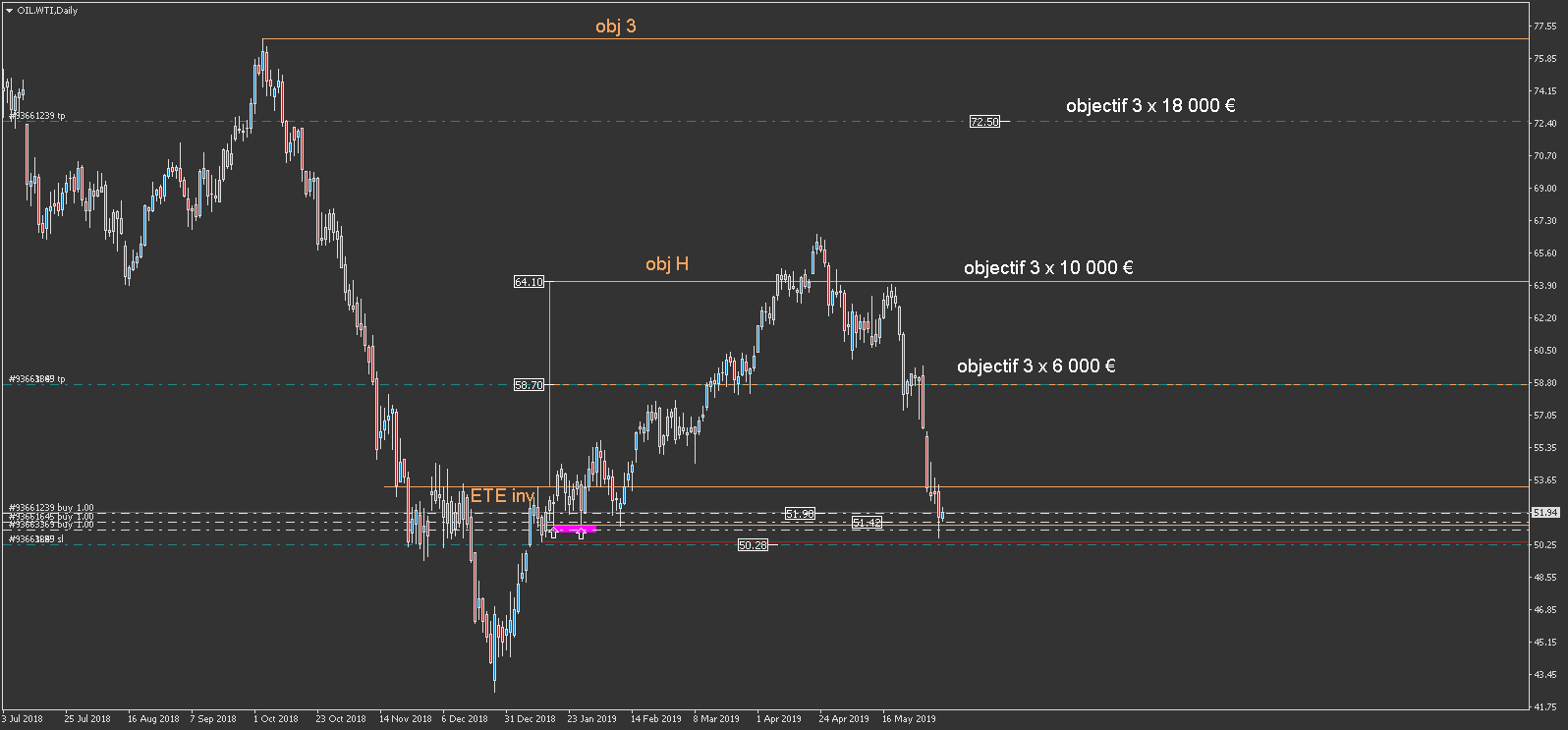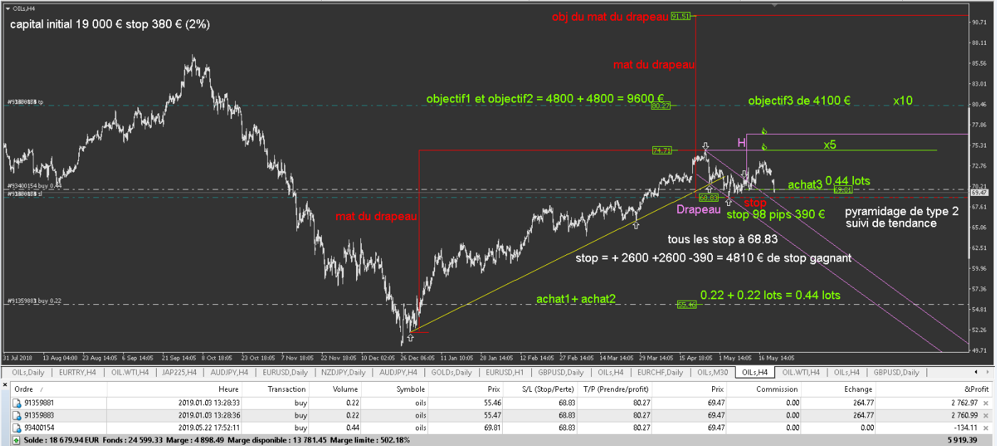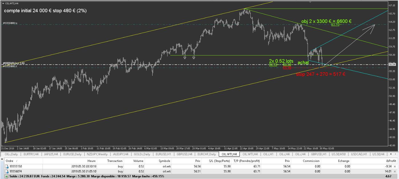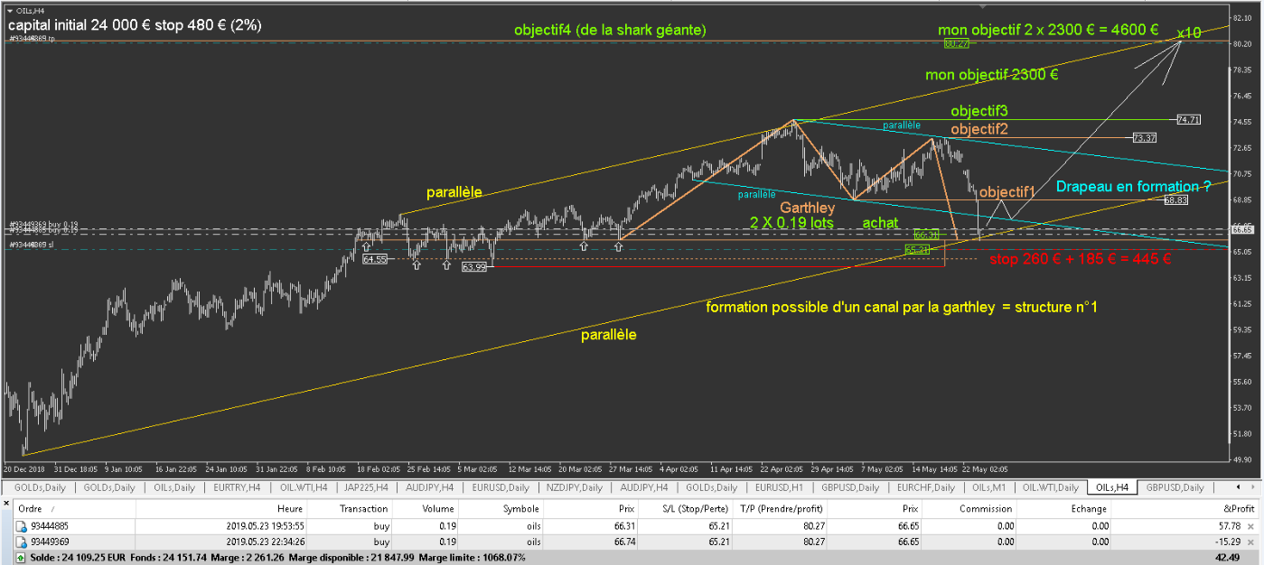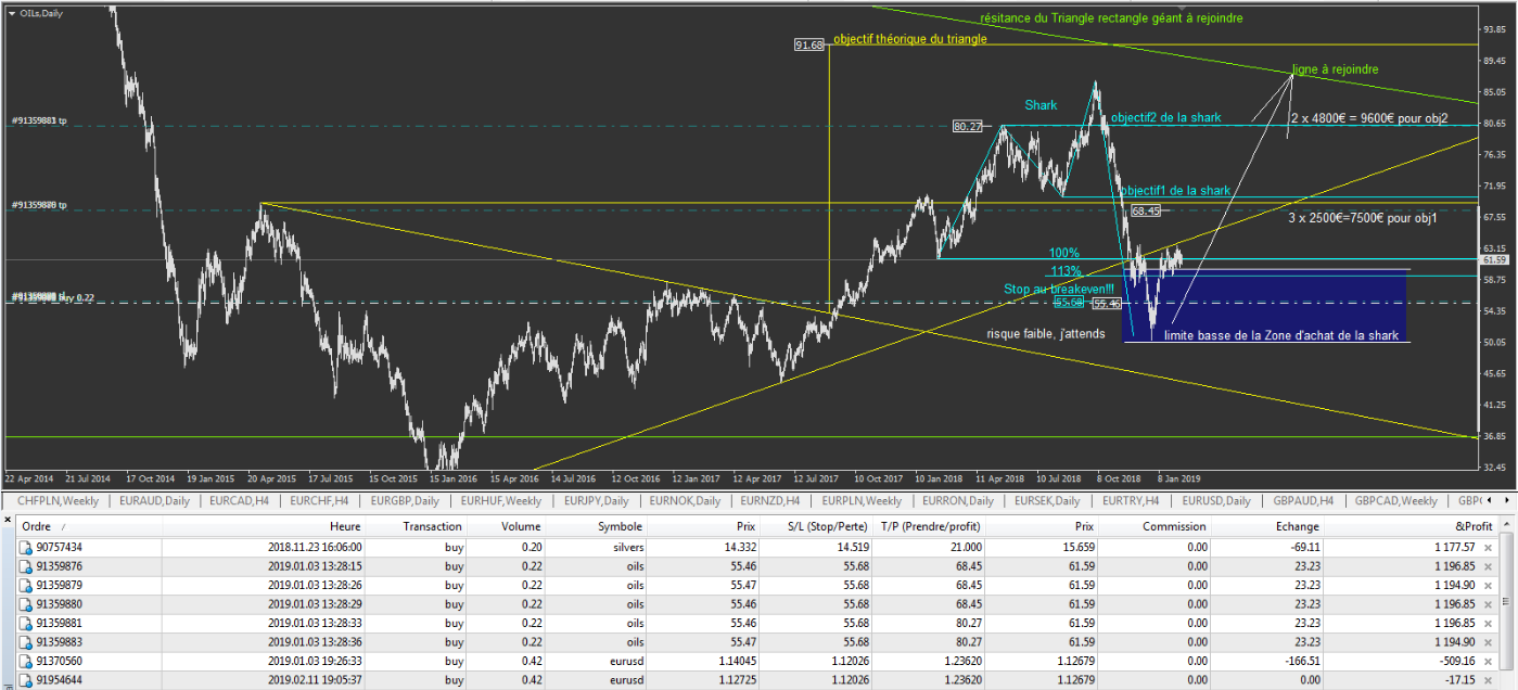 - L'OILs , toujours en cours avec le breakeven de fait pour ne plus rien risquer. J'ai 5X0.22 lots sur cette positions: