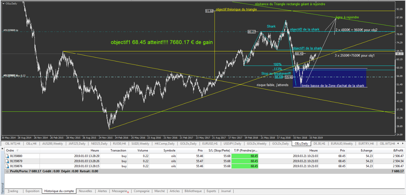 objectif1 des 68.45 atteint pour 3 trades de la position sur OILs