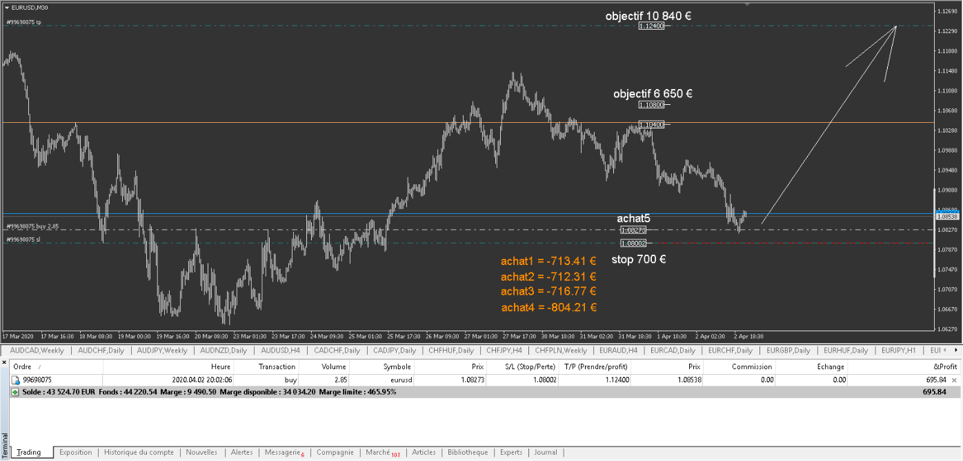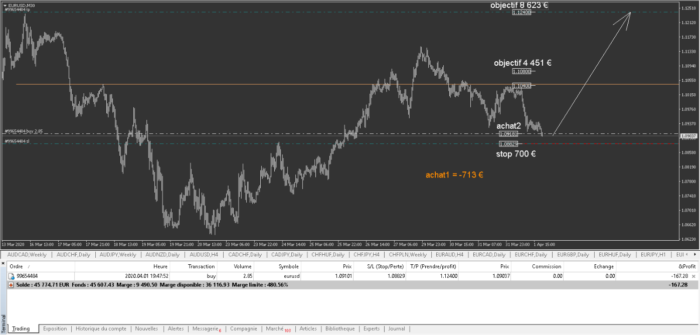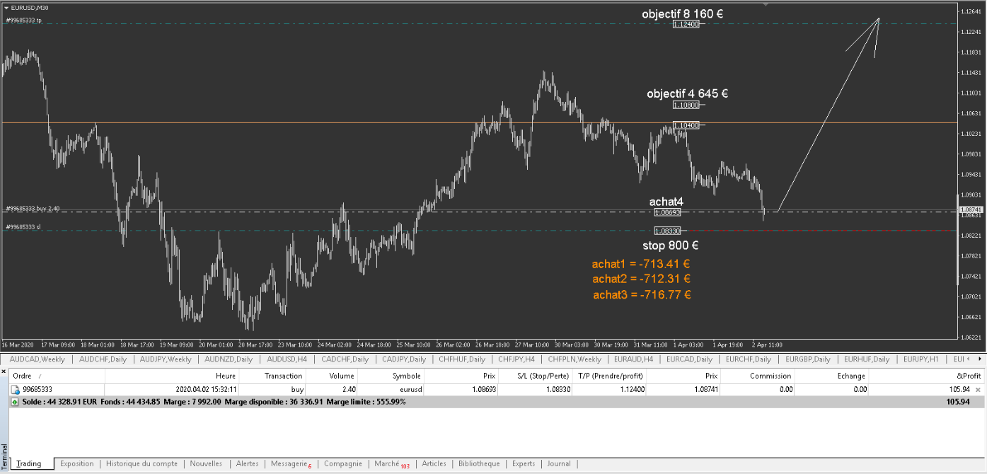 mais je pense avoir trouvé le socle, et je met la pression à la configuration en rachetant l'EURUSD plus bas!!!!!